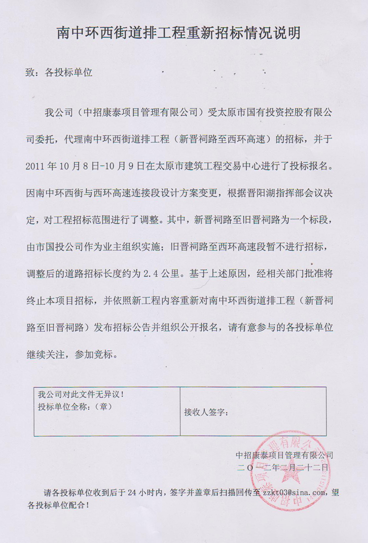 南中環(huán)西街道排工程重新招標(biāo)情況說(shuō)明