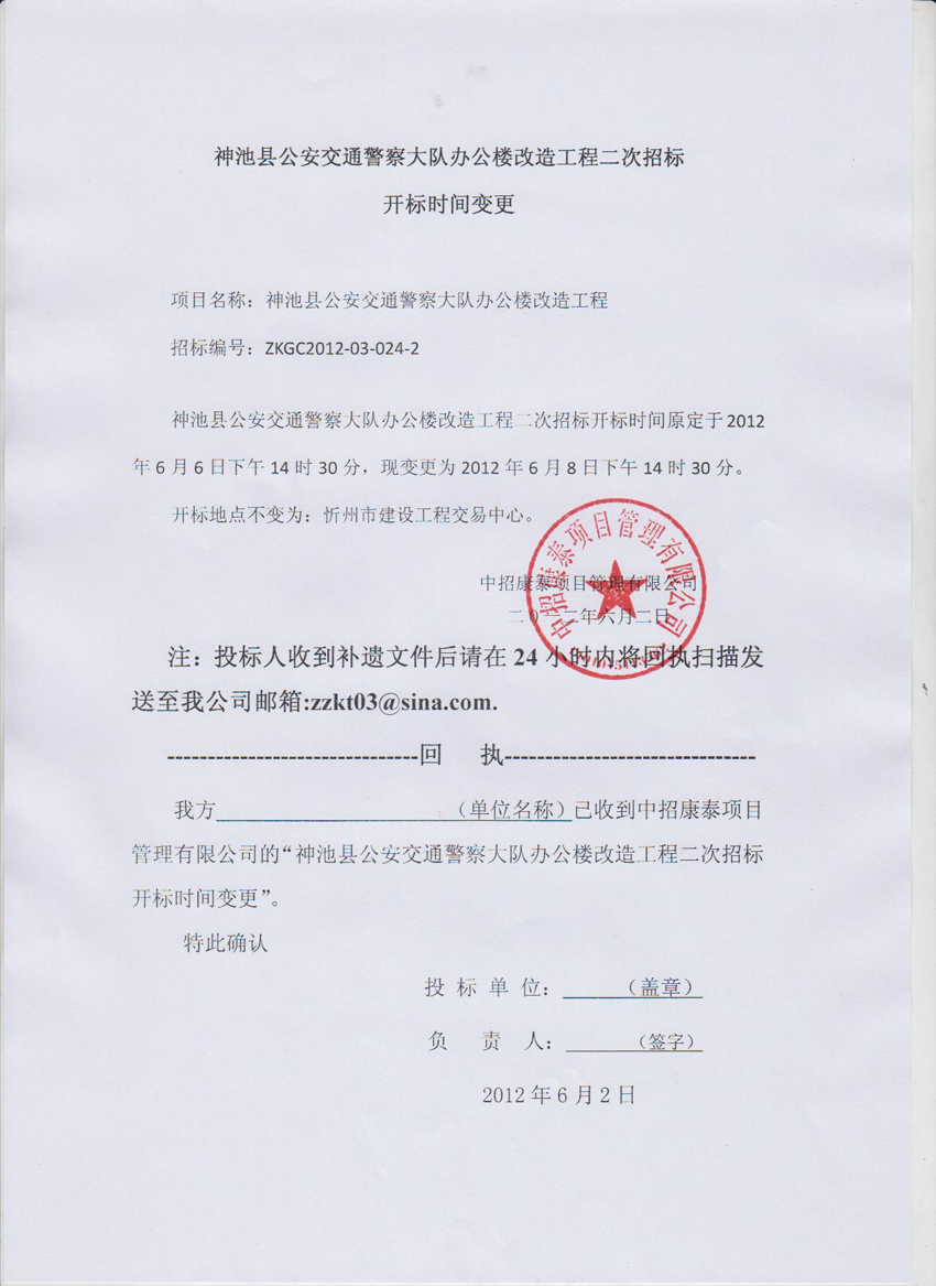 神池縣公安交通警察大隊(duì)辦公樓改造工程二次招標(biāo)開(kāi)標(biāo)時(shí)間變更